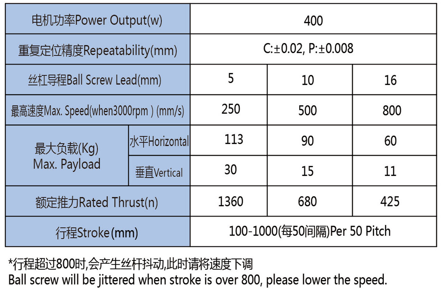 最大行程:1000mm